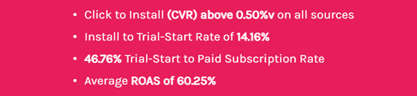 Unmatched targeting accuracy: Our AI analyzes vast datasets to pinpoint the ideal audience for each client. This data-driven approach ensures your message reaches the most receptive users, eliminating wasted ad spend. For instance, in the case of a renowned e-commerce company, we achieved a Click-Through Rate (CTR) exceeding 0.50% across all sources. This remarkable result signifies well-targeted campaigns that resonate with highly receptive users. Furthermore, the impressive 14.16% Install to Trial-Start Rate and 46.76% Trial-Start to Paid Subscription Rate further underscore the effectiveness of our AI-powered targeting in driving valuable conversions.